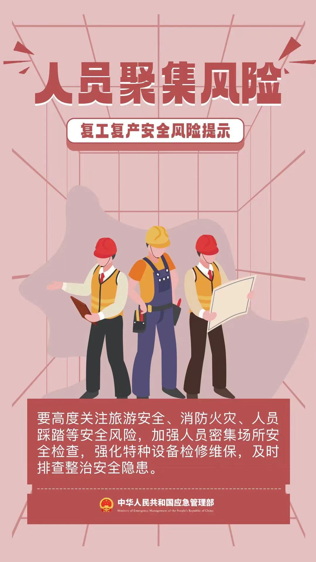 春節(jié)假期結(jié)束,各工程項(xiàng)目陸續(xù)開始復(fù)工復(fù)產(chǎn),安全防范不可疏忽大意。下面帶領(lǐng)大家來了解并盤點(diǎn)一下關(guān)于復(fù)工復(fù)產(chǎn)時(shí)期的主要危險(xiǎn)因素及應(yīng)對辦法。復(fù)工復(fù)產(chǎn)時(shí)期主要危險(xiǎn)因素:1.假期綜合征受假期影響,人雖然回到工作崗位了,但思想不集中,這就是“假期綜合征”。其危險(xiǎn)之處就在于職工身心疲憊、心情煩躁、精力不集中,很容易