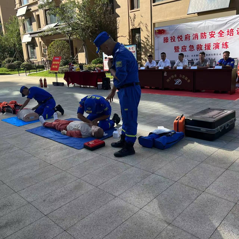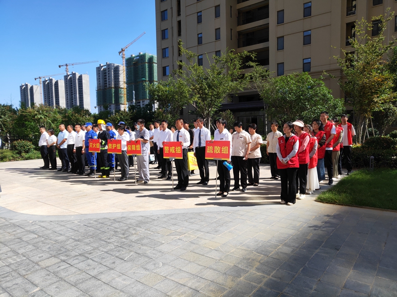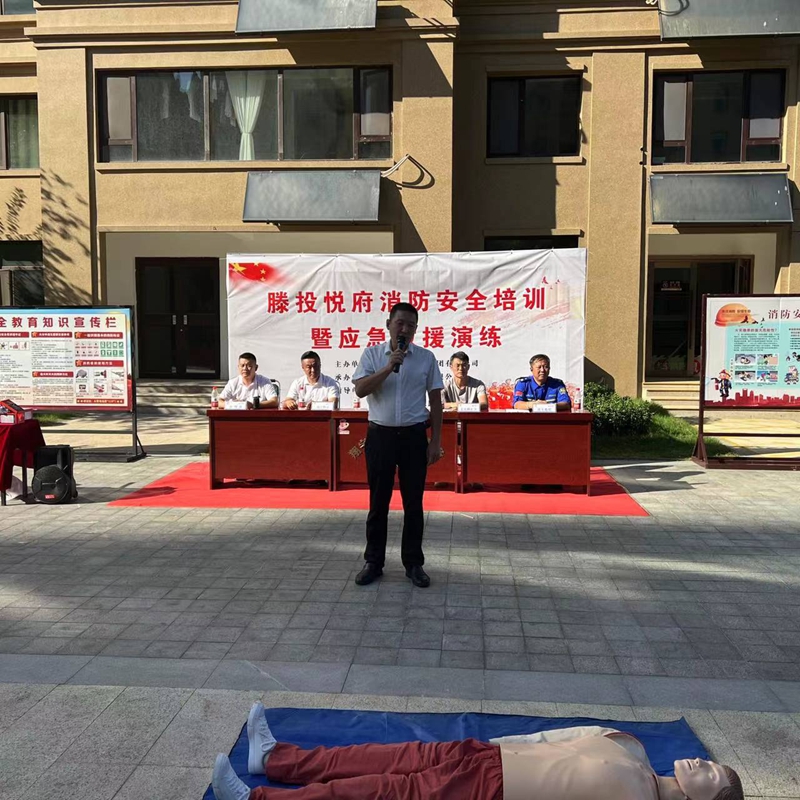 中秋國慶雙節(jié)將至,為進一步提升節(jié)日期間消防應急救援能力,確保滕投集團各下轄小區(qū)度過一個安全穩(wěn)定、歡樂祥和的佳節(jié)。9月21日下午,集團萬德物業(yè)公司聯(lián)合滕投悅府物業(yè)服務中心開展第三季度物業(yè)消防綜合演練活動?;顒友埩吮毙两值牢幕飞鐓^(qū)領導、滕州藍天救援隊救援人員、集團下轄14個物管項目經(jīng)理和安全專員共計80余人參加活動。