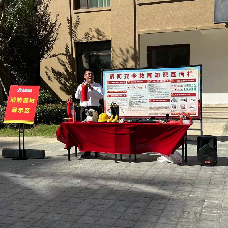 消防器材的講解及實操階段,翔宇物業(yè)滕北區(qū)域經(jīng)理關繼革講解各類消防器材及使用方法,就如何使用消防器材進行現(xiàn)場示范。