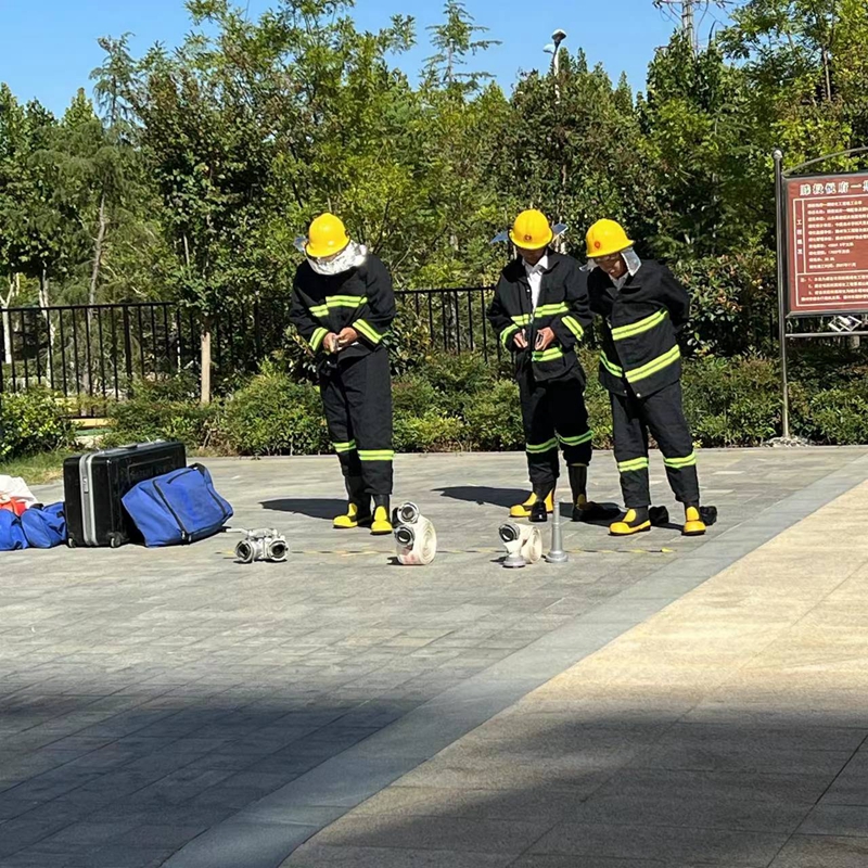 穿戴消防服及水帶連接階段,翔宇物業(yè)消防救援隊認真展示了消防服穿戴順序和消防水帶操作步驟,水槍拆裝操作細節(jié)等。
