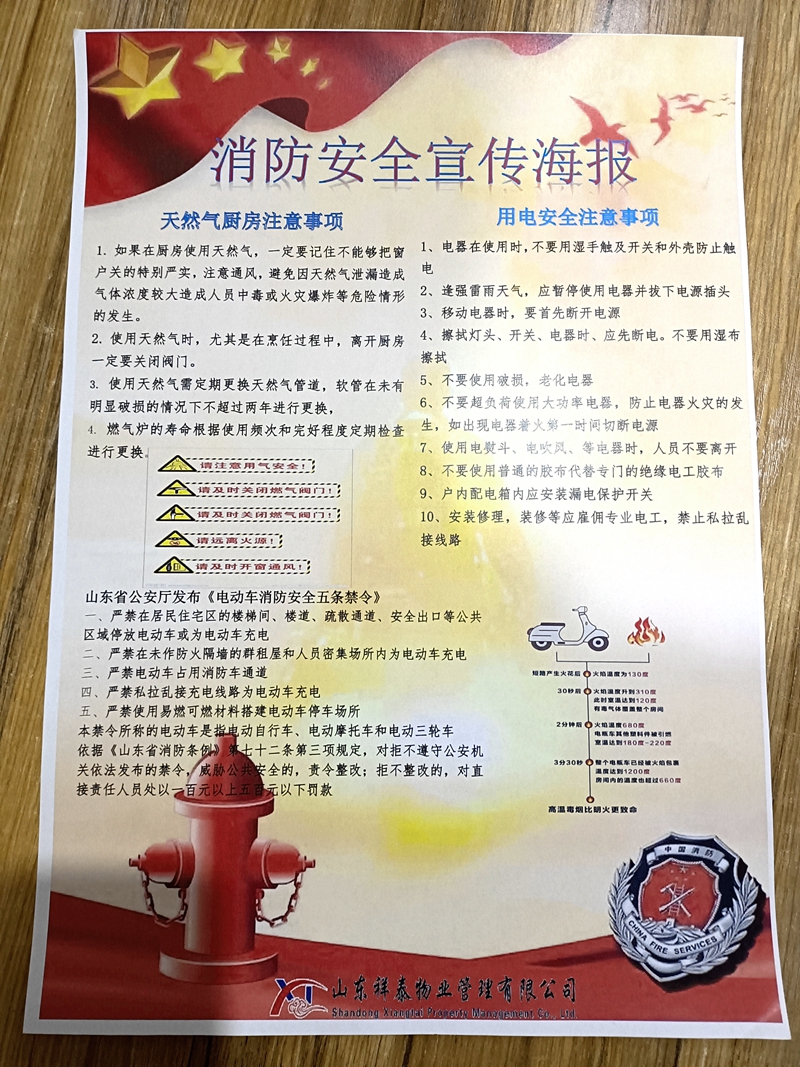 6月17日,為貫徹落實好集團公司安全生產月工作要求,人和藍灣小區開展消防安全主題活動。人和商管公司、安全品控部和山東祥泰物業公司相關負責人參加。 活動當天,物業消防負責人員向詳細講解了滅火器、消防栓及消防水帶等器材的使用方法,組織開展了火情處置消防演練,并在小區發放安全宣傳單,切實讓全體物業